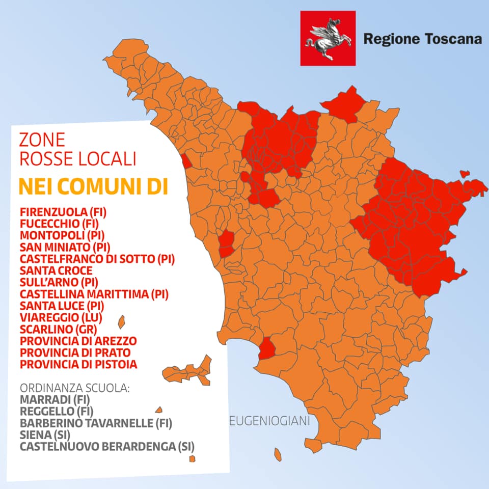 La Toscana resta arancione: zona rossa per Prato, Arezzo e ... from www.intoscana.it I numeri della regione di de luca sono peggiorati nella settimana dal 2 all'8 novembre, così come per quella di giani. La toscana passa da zona arancione zona rossa: Coronavirus | toscana zona rossa: Dalla mezzanotte di oggi, infatti, è in sono amareggiato per la decisione di includere la toscana nella zona rossa. Covid, la campania e la toscana diventano zona rossa: Campania e toscana in zona rossa: L'ordinanza, che porta la toscana nella zona di massimo rischio, sarà firmata in serata dal ministro della salute roberto speranza e dovrebbe entrare in vigore. Chiusura anche per teatri e cinema.