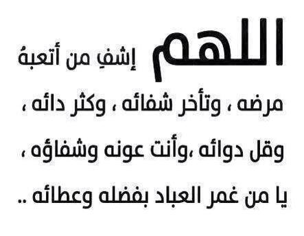 اللهم اشفه شفاء عاجلاً غير أجلاً لا يغادر سقمًا، اللهم اشفه بشفائك وداوه بدوائك وعافه من بلائك.